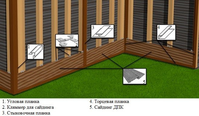 Помимо панелей из древесно-полимерного композита (расчет необходимо проводить с учетом площади фасада плюс 10-15%), для облицовки понадобятся следующие материалы: